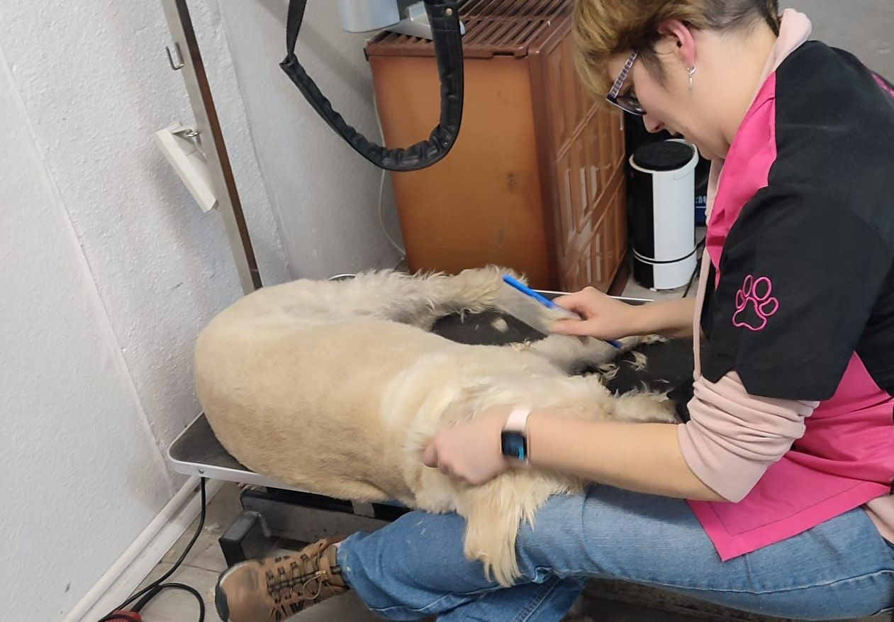 Bei Unterwollhunden (Bsp. Golden Retriever, Berner Sennenhund, Husky, Pomeranian, ...) pflegen wir das Fell und holen die Unterwolle heraus, damit die Haut des Hundes Luft bekommt und das Fell seine Aufgabe als "körpereigene Klimaanlage" erfüllen kann. Dabei ist das Waschen und blowern der Hunde unverzichtbar.